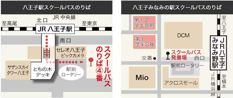 駅前ロータリー4番が本校の無料スクールバスの発着場です。